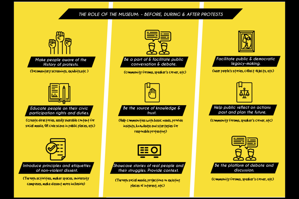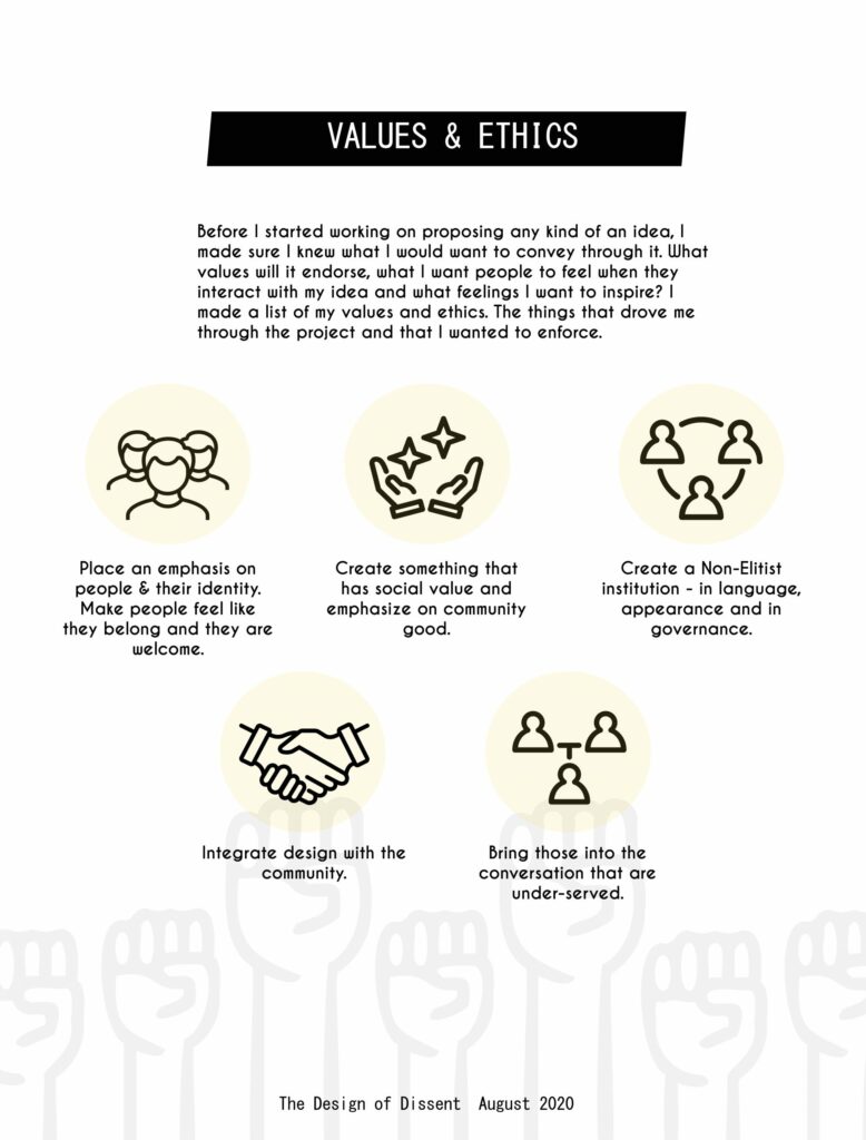 In order for the museum to be equitable & just, it had to serve a diverse and expanded audience and through this exercise, I tried to outline the exact roles I wanted the museum to fill as an institution in before, during and after times of civic crisis.