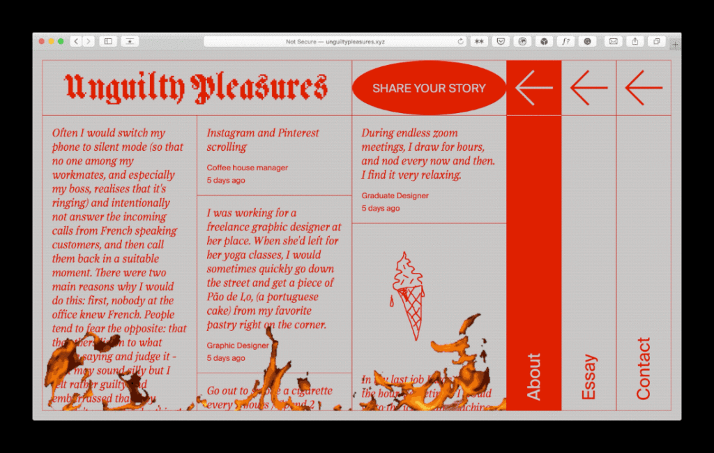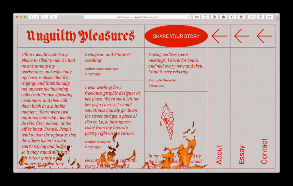 Design Outcome – Unguilty Pleasures – Interactive submission form