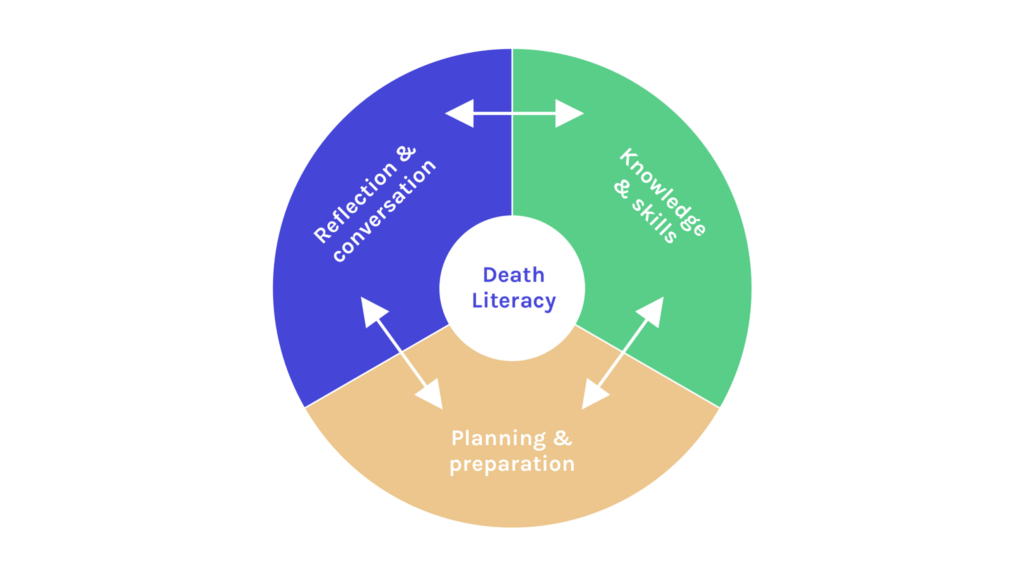 Following further desk research, video interviews, and autoethnography, three key areas for death literacy were identified.