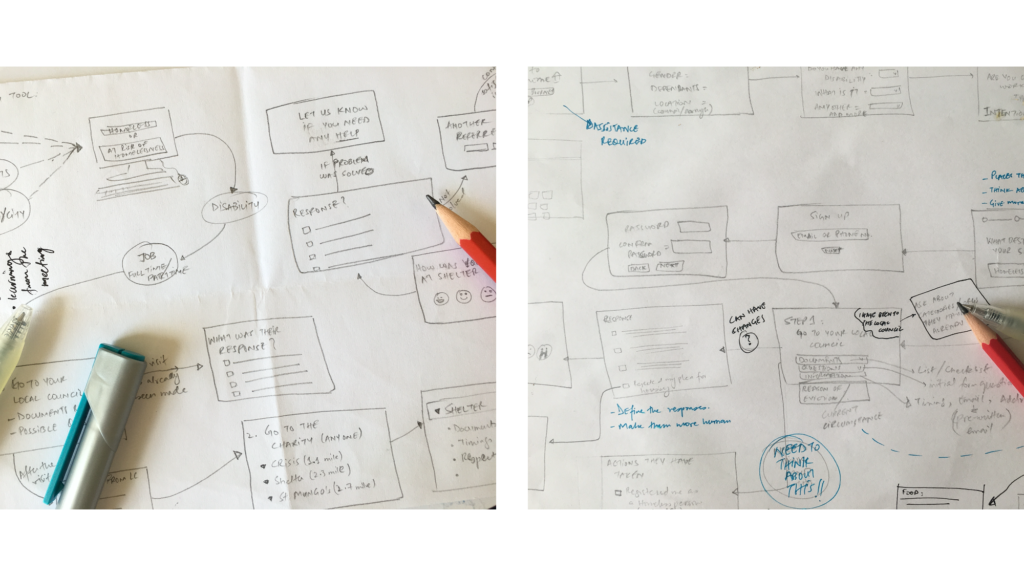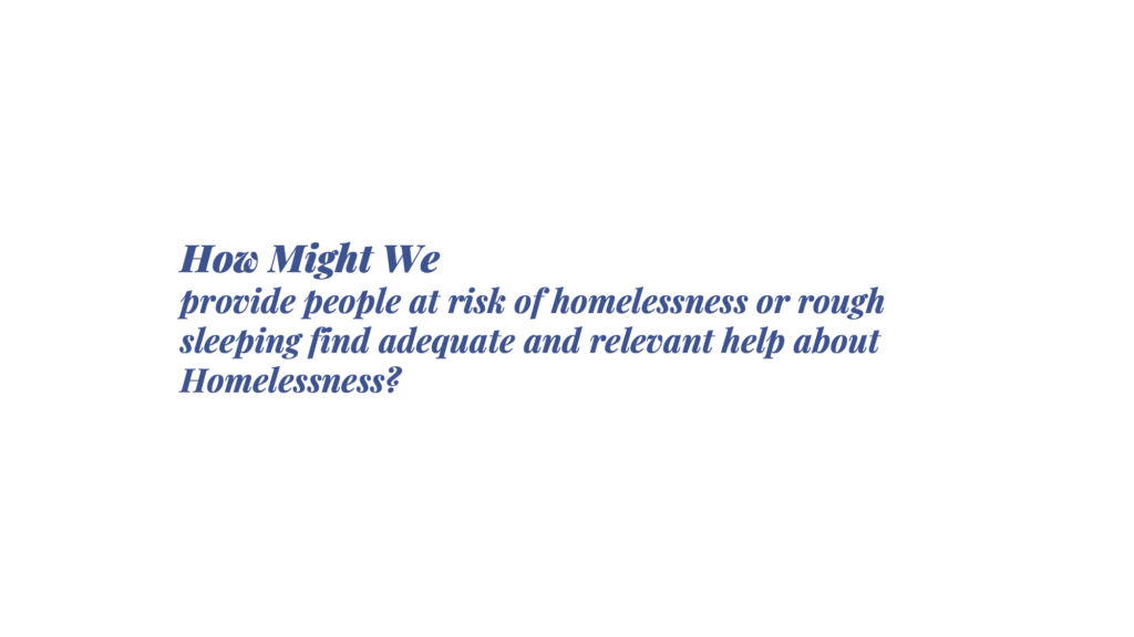 The first idea was to create a hand-holding platform that navigates the person out of their homelessness through continuous guidance at each step and provide all the relevant information about essential support organizations (food, showers, storage etc.) on the user-friendly platform. The second concept was of a card game that will become a conversation starter in workplaces as anyone can be hidden homeless and an empathetic workplace is one less thing to worry about for the person experiencing homelessness.