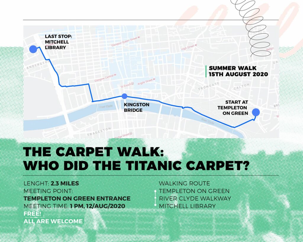 Based on the criteria, The carpet walk is historic and easy to walk from Templeton on Green to Cylde riverwalk and see the carpet in Glasgow Archives at Mitchell Library.