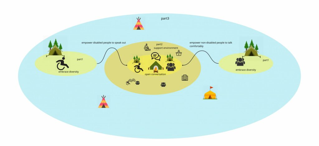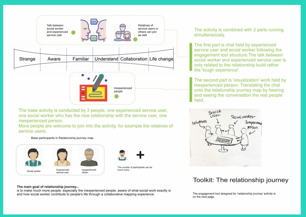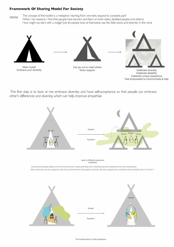 Linkers -Talk to me: An Invisible relationship sign for tourists in Japan to use. This is an invisible volunteer system. Everyone can become part of it, change your role as a volunteer or tourist. People who arrived in Japan will receive a signed badge. If you want to know the local culture or get help from local people, you could put the “talk to me” badge on your clothes/bags. The local volunteer who has “ask me” badge may see this. It’s a signal to visualize ‘communication’.