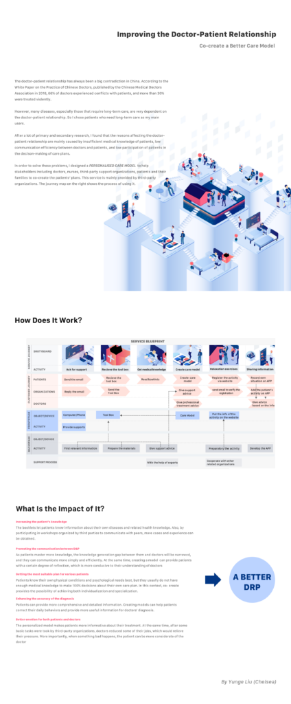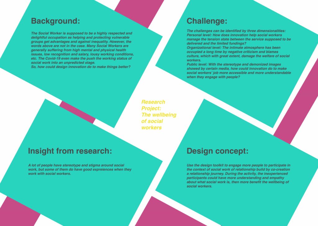 The page shows the background, main challenge, insights selected and the design concept of this research project.