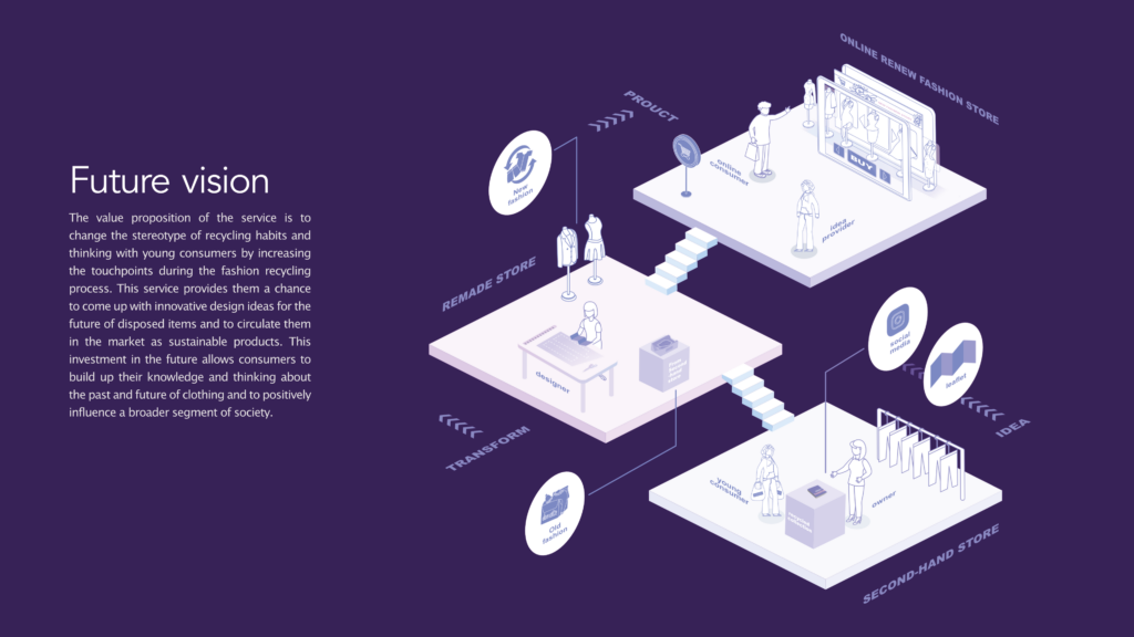 "How to make consumers change the perception and build empathy for fashion consumption in the nearly future to achieve a long-term sustainability? " This project aims to make more people engaged in the later process of recycling through the design tools and also propose the future vision of the new future ethical fashion consumption mode.