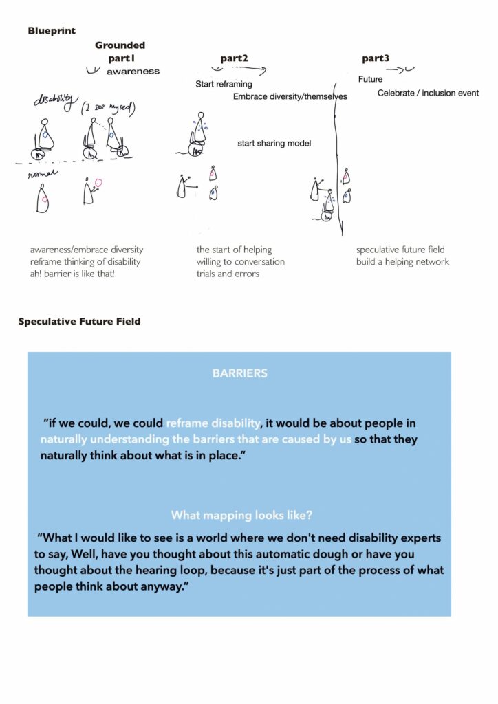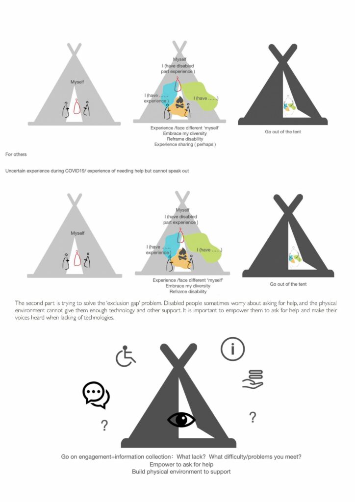 These are just some of the topics that became Masters projects – 12-week independent explorations of the world at a human and individual scale. Unlike previous years, there could be no workshops with stakeholders, few face-to-face interviews. People who normally would be happy to participate now had other things to focus on, and even when participants were willing the technology often was not. But along the way, students became masters of Zoom and Miro, comfortable conducting conversations and co-designing at a distance, and making use of whatever space was available to them.