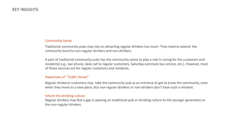 This project aims to explore the role of a community pub in creating a sense of community belonging and enhancing social well-being to help reverse the shutdown of a community pub. The proposal is a pub service currently to help the non-regular drinkers who are new to a community build the "Public House" mindset through a community pub. It includes assisting non-regular drinkers aware that a community pub could be an entrance to understand the community, feel welcomed by the regulars, and helping the pub landlords attract more non-regulars, even non-drinkers in the future, increasing their business.
