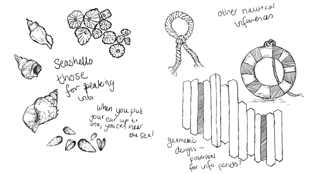 Due to the nautical theme of the subject matter, initial planning for the design of the interactive experience was based on matter such as seashells, rock formations and other associated objects